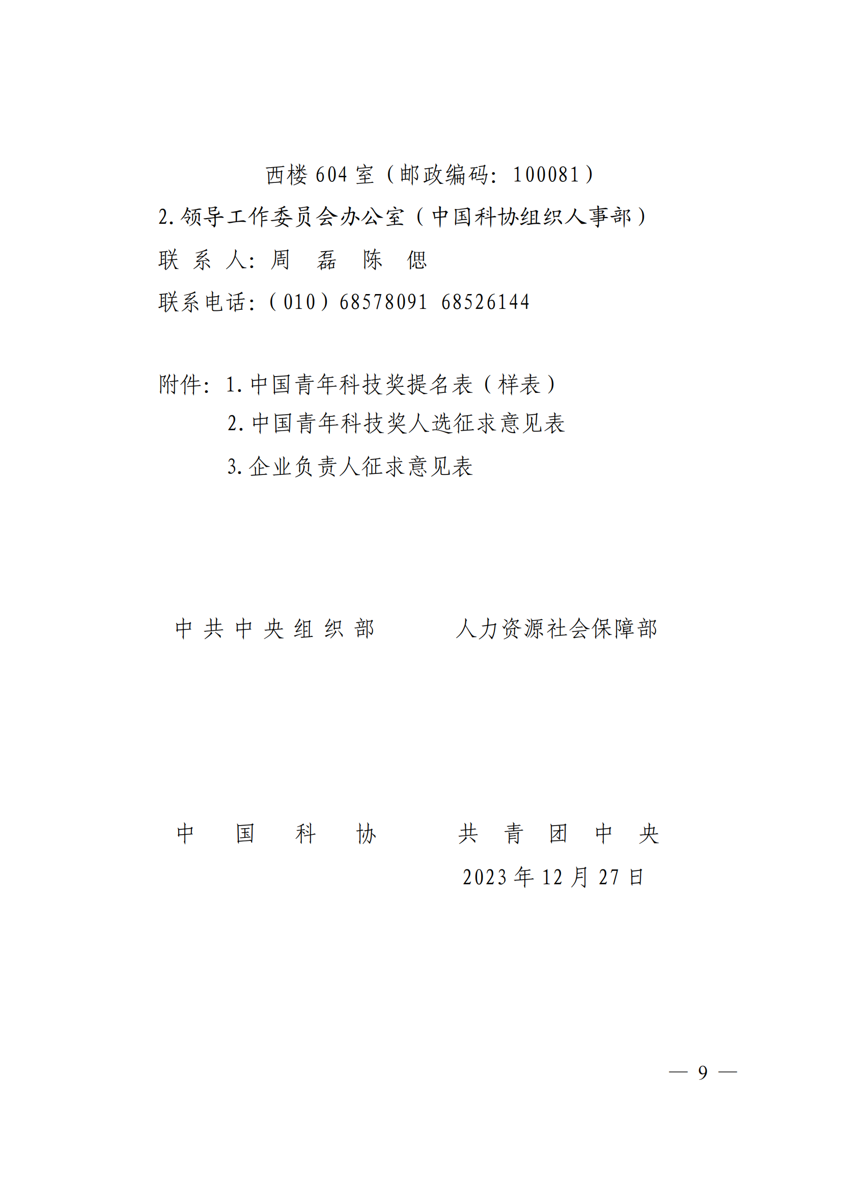 中共中央组织部人力资源社会保障部中国科协共青团中央关于开展第十八届中国青年科技奖候选人提名工作的通知